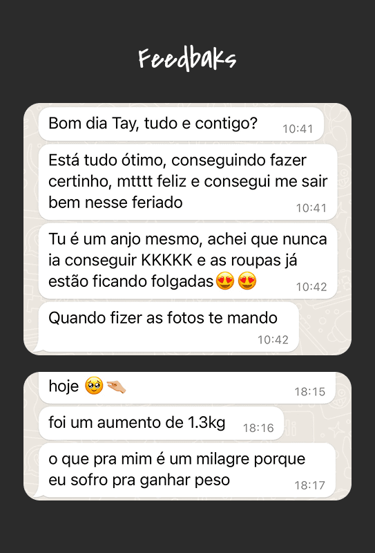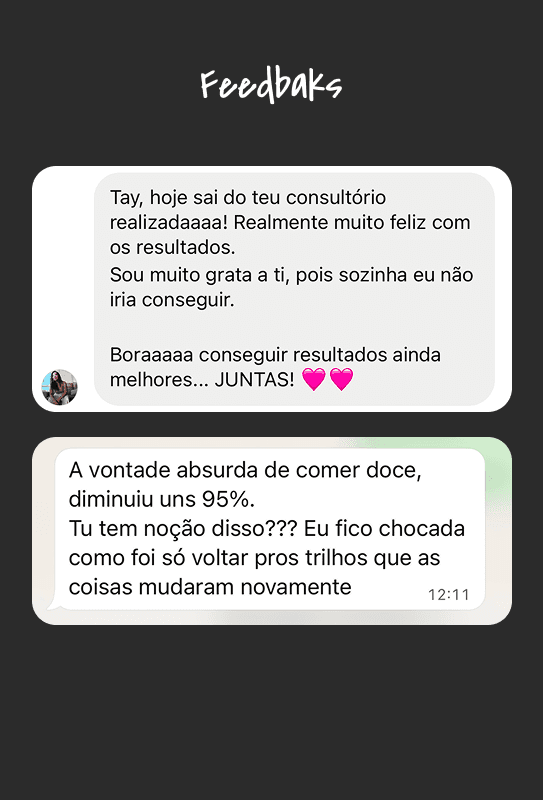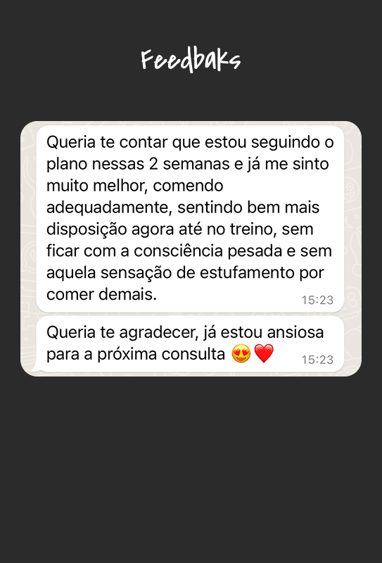 Receber feedbacks positivos de cada cliente, ver a autoestima crescer e a relação com a alimentação melhorar, é o que dá sentido ao meu trabalho.